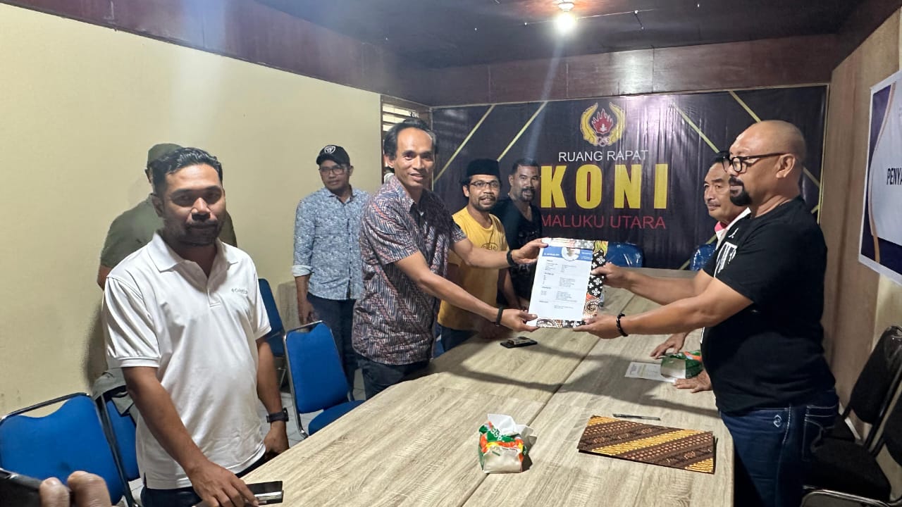 Penyerahan formulir dilakukan pada Jumat (3/10/2025) sekira pukul 21.30 WIT, di sekretariat KONI Malut, Kelurahan Soa, Kecamatan Ternate Utara.