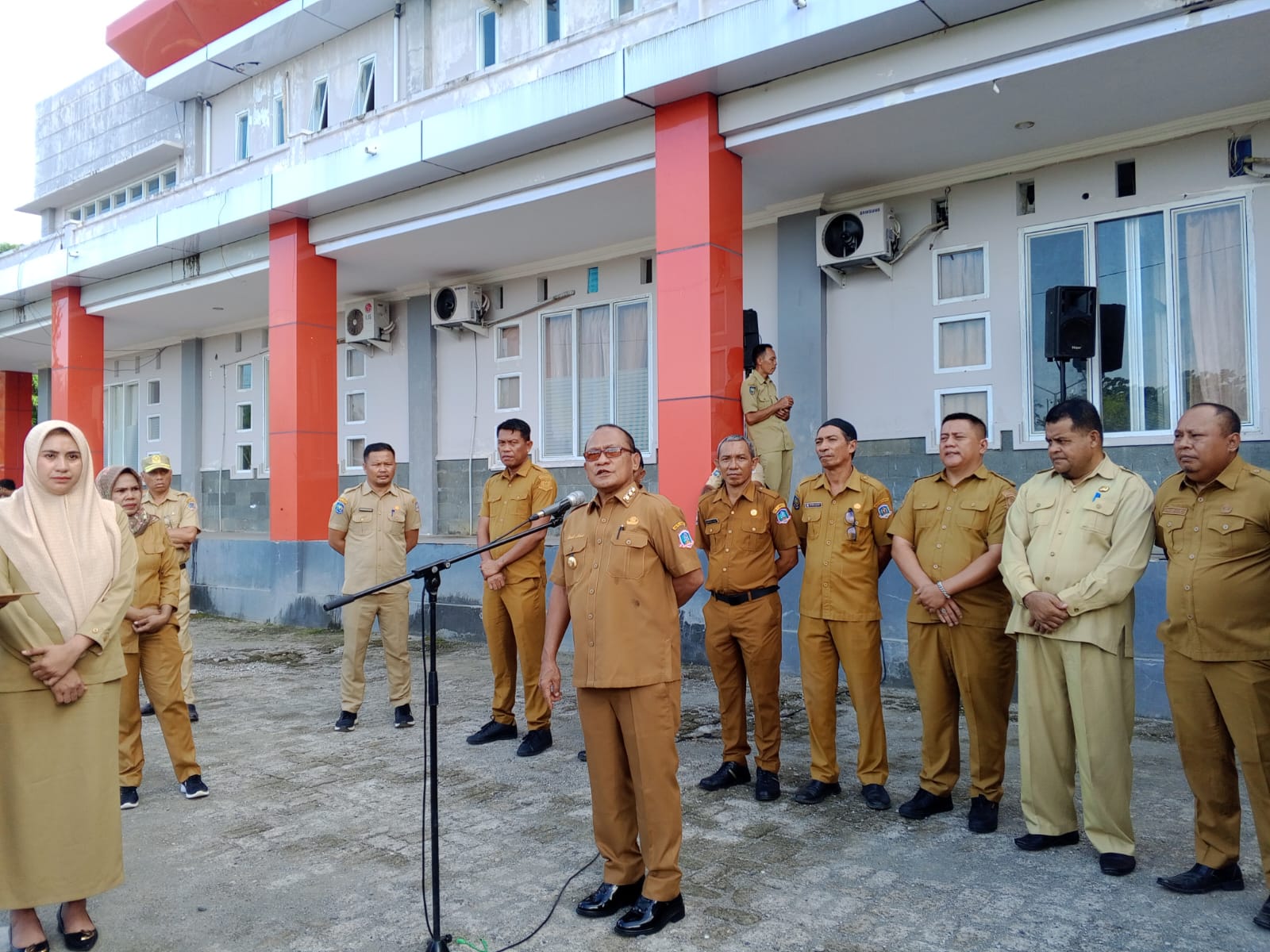 Bupati Pulau Morotai, Rusli Sibua saat memimpin apel pagi (Ranto/narasitimur)