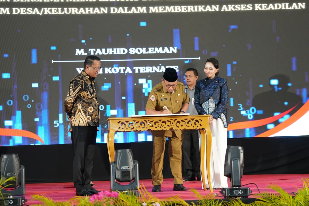 Selain peresmian Posbankum, kegiatan tersebut juga diisi dengan penandatanganan Nota Kesepahaman (MoU) antara Kementerian Hukum dan HAM RI dan sejumlah kepala daerah, termasuk Pemerintah Kota Ternate, terkait pelaksanaan program bantuan hukum dan pelatihan paralegal.