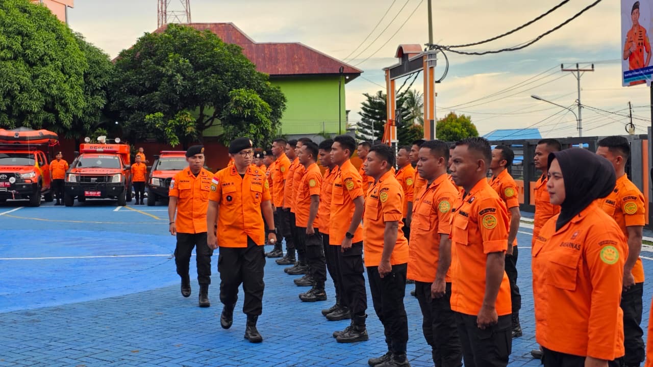 Siaga SAR Khusus Nataru 2025/2026 ditandai dengan Apel Gelar Pasukan yang dipimpin Kepala Kantor SAR Ternate, Iwan Ramdani, di Lapangan Upacara Basarnas Ternate, Jumat (19/12/2025).